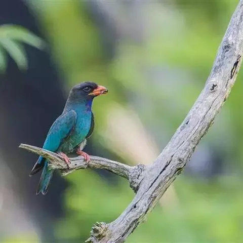 三宝鸟,是佛法僧目佛法僧科三宝鸟属中小型攀禽。成鸟通体为富有光泽的墨蓝绿色,…