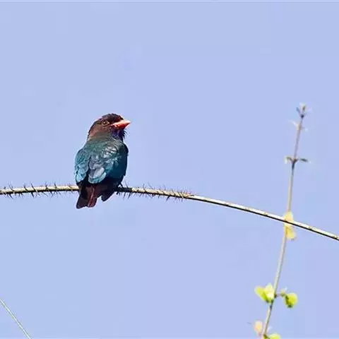 棕胸佛法僧是佛法僧科佛法僧属中型鸟类,体长32~35厘米。黑色的嘴细而下弯。头顶暗蓝色,…
