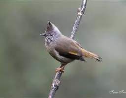 褐头凤鹛小型鸟类,体长12~13厘米。头顶有可竖立的红褐色羽冠,头侧、枕、颊、喉和下体白色,…