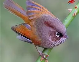 栗耳凤鹛,雌雄羽色相似。额、头顶至枕灰色,头顶有一短的不甚明显的羽冠,…