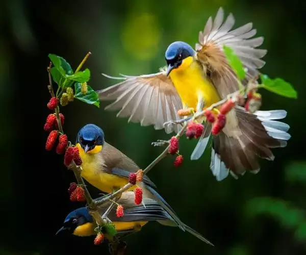 金胸雀鹛是莺科、雀鹛属小型鸟类,体长10-11厘米。头黑色,头顶中央有一道白色中央冠纹,…