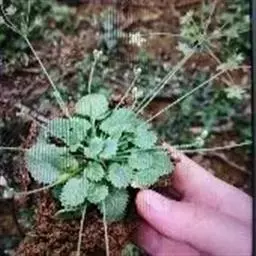 全草皱缩,叶莲座状丛生,多皱缩,完整叶片展平后呈长圆形至卵状长圆形,长0.6-2.5cm,先端钝或稍锐尖,基部渐狭,边缘具稀疏小牙齿,无毛,淡黄色;叶柄纤细,等长于或稍长于叶片。花葶纤细,黄色至红色,上部被短腺毛;伞形花序多花;小花淡黄色。气微,味淡。