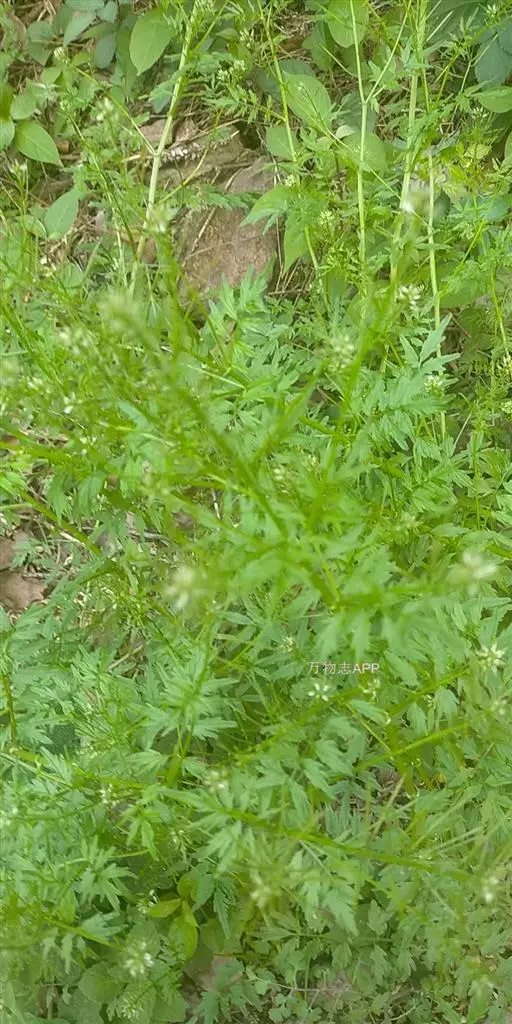 一年生草本,高10-60厘米。根圆锥状,较细长。 茎直立或斜上,多分枝,中空,表面具深条棱,粗糙。