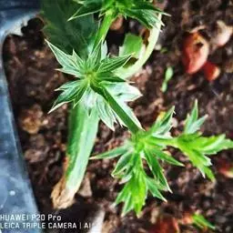 下部叶具短柄,叶鞘短宽,边缘膜质,上部叶柄全部鞘状;叶片轮廓卵形至三角状卵形,长3-8厘米,宽2-5厘米,2-3回三出式羽状全裂,羽片轮廓卵形至卵状披针形,长1-3厘米,宽0.5-1厘米,先端常略呈尾状,末回裂片线形至线状披针形,长3-10毫米,宽1-1.5毫米,具小尖头,边缘及脉上粗糙。
