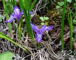 双色野鸢尾为多年生草本植物,叶子呈剑状淡绿色。…