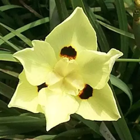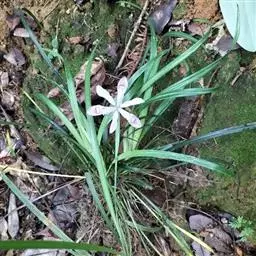 亮叶鸢尾为常绿多年生草本植物。叶面光滑、亮绿色,花茎扁平叶状。原产于巴西。