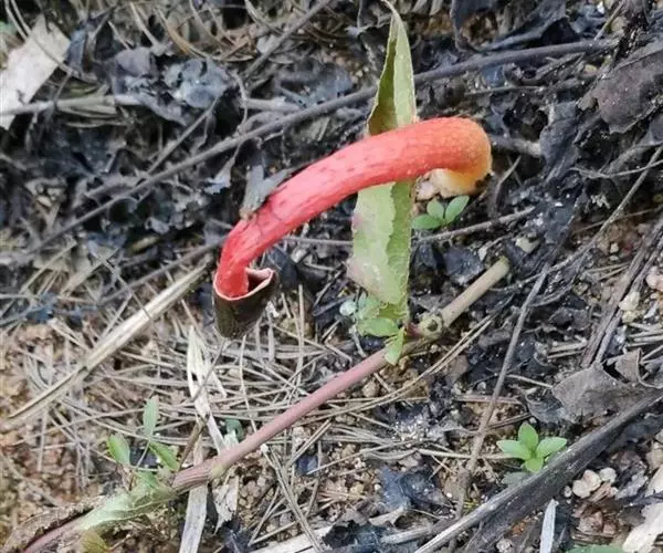 红鬼笔 生态习性:夏秋季在菜园、屋旁、路边、竹林等地上成群生长。多生长在腐殖质多的地方。