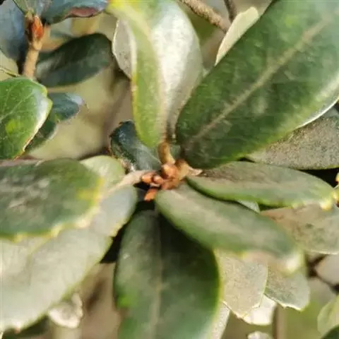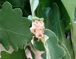 常绿灌木或小乔木,高达15米。小枝密被棕色绒毛。叶片长圆形,长椭圆形或倒卵形,长3-9厘米,宽2-5厘米,顶端圆钝,基部圆形,全缘或有刺锯齿,叶面沿中脉被毛,叶背被棕色海绵状腺毛及白色星状毛,侧脉每边7-12条;叶柄长2-7毫米,被棕色绒毛。雄花序长4-6厘米,花序轴及花被被绒毛;果序长5-6厘米。壳斗帽斗状,直径2-3厘米,高0.6-1厘米,壁厚约2毫米,顶端边缘扩展或波浪状皱褶,内壁被灰黄色厚绒毛;小苞片披针形,长约2毫米,中下部被灰棕色绒毛,顶端钝头,红棕色,无毛。坚果卵形或近球形,高、径约1.5-1.8厘米,无毛,顶端圆,果脐微突起。花期4-5月,果期10-11月。