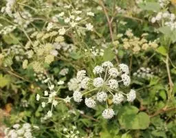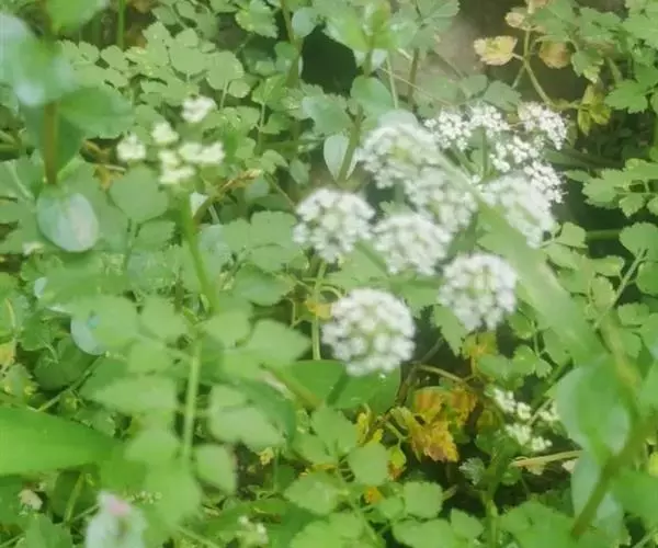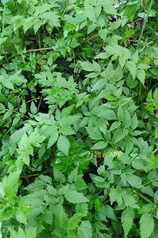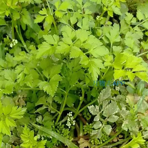 水芹(Oenanthe javanica (Bl.) DC.)是伞形科,水芹属多年生草本植物,茎直立或基部匍匐。基生叶有柄,基部有叶鞘;叶片轮廓三角形。复伞形花序顶生;无总苞;伞辐不等长,直立和展开;萼齿线状披针形,花瓣白色,倒卵形,有一长而内折的小舌片;花柱基圆锥形,直立或两侧分开。果实近于四角状椭圆形或筒状长圆形,侧棱较背棱和中棱隆起,木栓质。花期6-7月,果期8-9月。