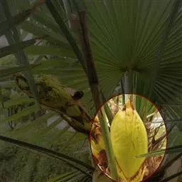 茎棍棒形,基部膨大,茎表皮银白色,叶簇生茎顶端,如伞状,花白色或淡红,花瓣中央有红条纹。