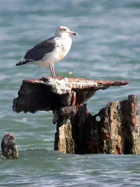 灰背鸥大型水鸟,体长62~69厘米。嘴直,黄色,下嘴先端有红色斑。脚粉红色,头、颈和下体白色,背、…