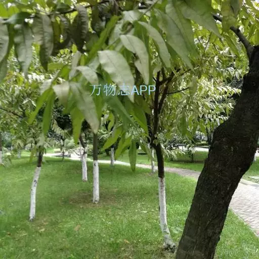 叶片长圆披针形、椭圆披针形或倒卵状披针形,长7-15厘米,宽2-3.5厘米,先端渐尖,基部宽楔形,上面无毛,下面在脉腋间具少数短柔毛或无毛,叶边具细锯齿或粗锯齿,齿端具腺体或无腺体;叶柄粗壮,长1-2厘米,常具1至数枚腺体,有时无腺体。