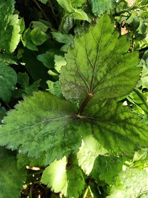 多年生草本,高20-100厘米。主根短,侧根多数,细长。茎直立,光滑,有分枝。表面有时略带淡紫色。基生叶或上部叶有柄,叶柄长5-20厘米,叶鞘边缘膜质;叶片轮廓三角形至广卵形,长2-14厘米,宽3-17厘米,通常为3小叶;中间小叶片呈菱状倒卵形或心形,长2-14厘米,宽1.5-10厘米,顶端短尖,基部楔形;两侧小叶片斜倒卵形至长卵形,长1.5-13厘米,宽1-7厘米,近无柄,所有的小叶片边缘有不规则的尖锐重锯齿,表面绿色,背面淡绿色,两面叶脉隆起,最上部的茎生叶近无柄,小叶片呈卵状披针形至窄披针形,边缘有锯齿。
