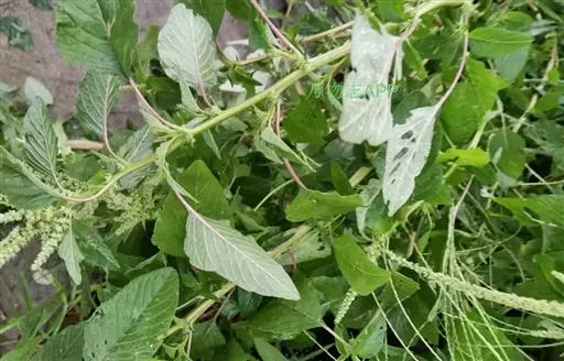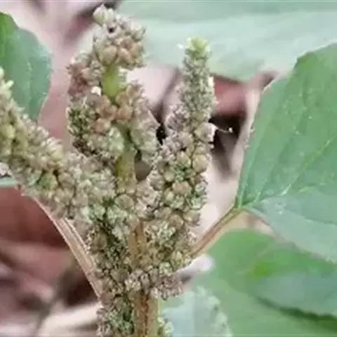 反枝苋是苋科苋属的一年生草本植物。株高达1米;茎密被柔毛;叶菱状卵形或椭圆状卵形,先端锐尖或尖凹,…