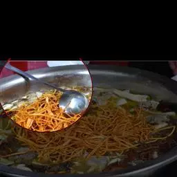 辅料:香菇丝,白菜丝,青椒丝,红椒丝,洋葱丝各100克,韩国大酱100克,番茄沙司50克,盐,味精,鸡精少许