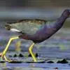 紫水鸡脚上虽然没有蹼,但却会游泳、潜水。它们生活在水边水草繁茂的地方,有时也会游到水面较宽阔的地方去寻找食物。其食物以植物为主,也食一些螺类和水栖昆虫。