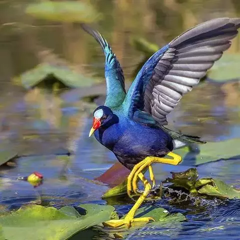 紫水鸡是秧鸡科紫水鸡属鸟类。下辖12个亚种,中国为云南亚种。体长40-45厘米,体羽大多为紫蓝色,…
