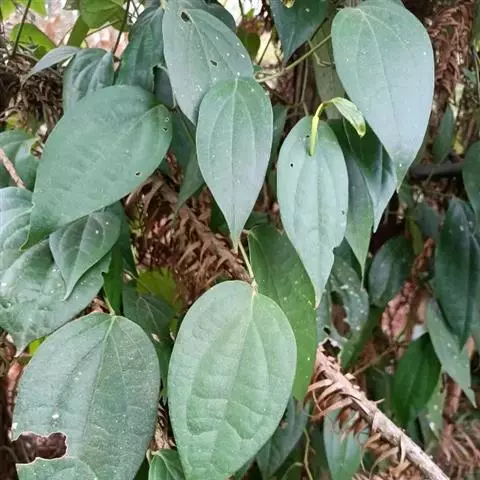 假蒟是胡椒科胡椒属多年生草本植物。小枝近直立,无毛或幼时被极细的粉状短柔毛;叶近膜质,有细腺点,…