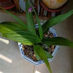建兰四大铭品之一。夏皇叶形为长鱼肚型,叶尾稍钝,叶面波浪纹稍重!叶片厚实!花为黄白色,稍偏黄,两捧软兜,龙吞舌,外瓣稍短,瓣尾稍尖!夏皇开品比较稳定,惜花型稍小了一点!夏皇据说出自四川郫县,初名“夏荷梅”意为花荷梅之型!!