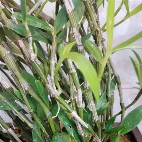红花石斛:茎直立或悬垂,圆柱形,有时中部增粗而稍呈纺锤形,基部收窄,不分枝,具多个节。叶薄革质,…