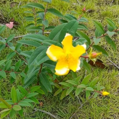 金丝梅是金丝桃科金丝桃属丛状灌木。全株无毛,枝条纵线棱,褐色或红褐色;单叶对生,…