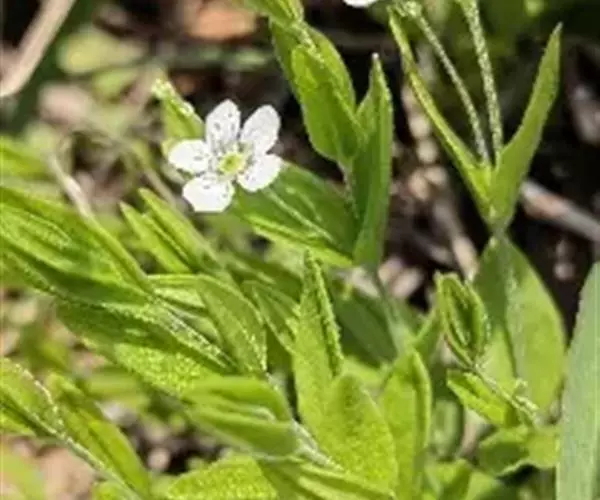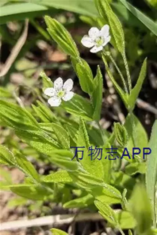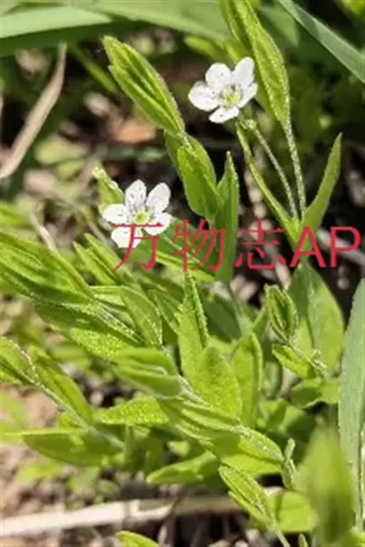 聚伞花序顶生或腋生,具1-3朵花;花序梗细长,花梗细,长0.5-2厘米,密被短毛;苞片针状;花直径约7毫米;萼片卵形或椭圆形,长约2毫米,无毛,顶端钝,边缘白膜质,中脉凸起;花瓣白色,椭圆状倒卵形,顶端钝圆,比萼片长1-1.5倍;雄蕊短于花瓣,花丝基部被柔毛;花柱3。