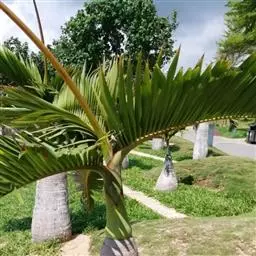 直立乔木状,高达10米或更高,直径达50厘米,叶多,羽状全裂,簇生于茎顶,长3-4.5米,羽片外向折叠,线状披针形,长70-80厘米,宽2-4厘米,下部的退化成针刺状;叶柄宽。