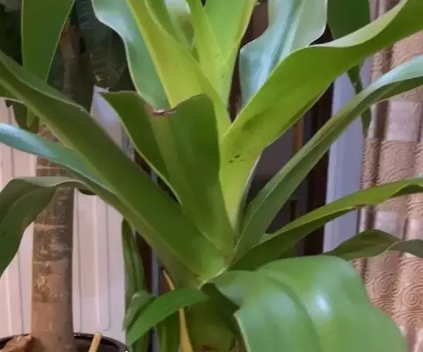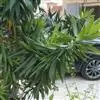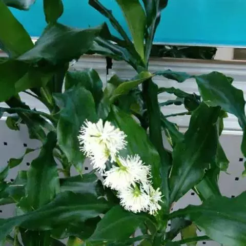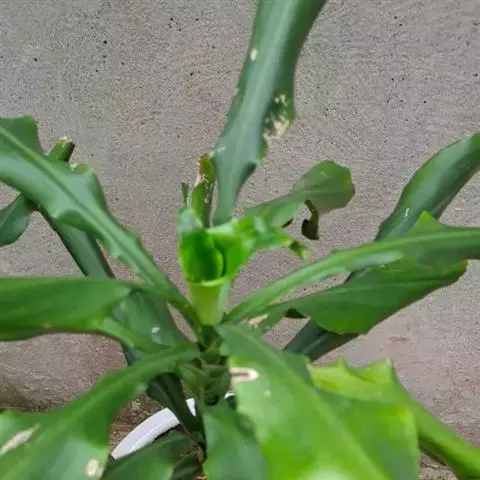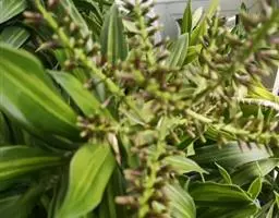 叶片宽大。叶簇生于茎顶,长椭圆状披针形,无柄;叶长40-90厘米、宽6-10厘米,弯曲成弓形,叶缘呈波状起伏,叶尖稍钝;鲜绿色,有光泽。穗状花序,花小,黄绿色,芳香。