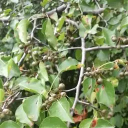 梨黑星病:别名疮痂病,为梨最主要病害之一,危害梨树的果实,果埂、叶片、叶柄和新梢等。防治措施:(1)消灭病源:早春落花后至6月,注意病梢发生情况,及时摘除烧毁,清扫落叶、落果、剪除病梢。(2)药剂防治:①临近花期和高谢花70%左右各喷一次1:2:244波尔多液或1:2:200-244波尔多液或800倍“大生M”保护花序、嫩梢和新梢;②5月中旬,6月中旬,7月中旬,8月上旬各喷1次800倍杜邦福星,1200倍多霉清,或800倍大生M。