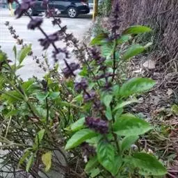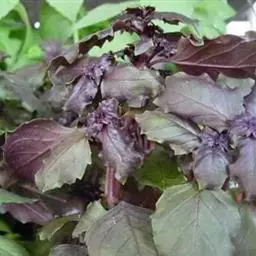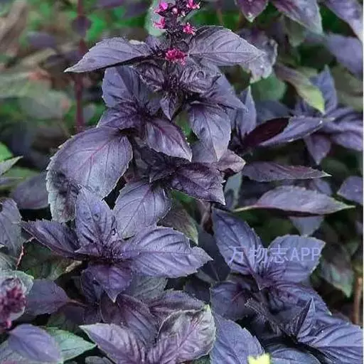紫罗勒,Ocimum basilicum ‘Purple Ruffles’,英语名字 :Basil,唇形科罗勒属植物。叶色独特,适于庭植、花坛构成色彩变化或盆栽。叶片可当蔬菜食用,也可冲泡花草茶,浸入醋中可得色泽美丽的罗勒醋。