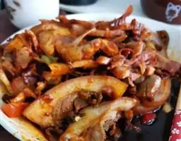 3、牛肉馅烂后,番茄切成薄片放入,水淀粉勾芡,加少量精盐调味即可。