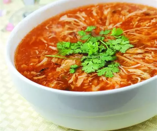 黑胡椒粉半匙,热高汤五杯,香菜少许;水一大匙,精盐两匙,味精半匙,湿淀粉一大匙。