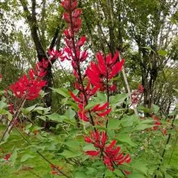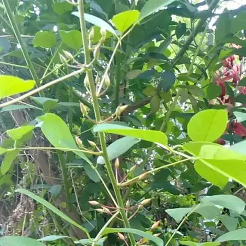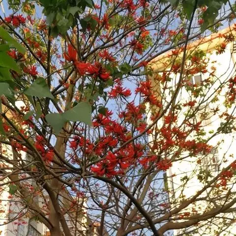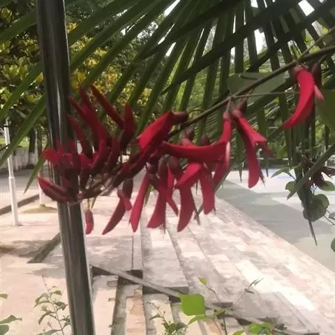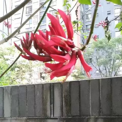 龙牙花(Erythrina corallodendron Linn.)与鹦哥花的主要区别是:顶生小叶菱形,长4-10厘米,旗瓣椭圆形,长4.5-6厘米,种子深红色,有黑斑。花期6-7月。