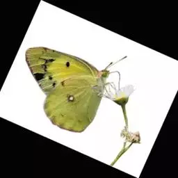纹黄蝶,翅面黄色,缘毛桃红色;前翅外缘宽的黑边中有几个黄色斑,中室端部有一个黑斑;后翅外缘的黑色斑…