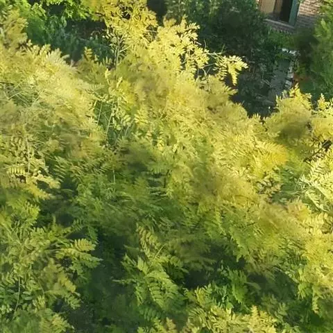 乔木,高4-15米,幼嫩部分和花序被锈色毛;老枝具黄色细小皮孔。二回羽状复叶长30-42厘米;叶柄粗壮,被锈色毛;叶轴长25-35厘米;羽片7-15对,对生,长8-12厘米;小叶(7-)10-21对,无柄,排列紧密,小叶片革质,长圆状倒卵形,长12-17毫米,宽5-7毫米,先端圆钝,具凸尖,基部两侧不对称,边全缘,上面深绿色,下面浅绿色。圆锥花序顶生或腋生,密被锈色短柔毛;苞片长5-8毫米,早落;花梗长5毫米,与花蕾等长,相距5-7毫米;花蕾圆形,直径5-8毫米;萼片5,卵形,外面被锈色茸毛,长5-8毫米,宽4-7毫米;花瓣5,倒卵形,具长柄,两面中部密被锈色长柔毛,长15-17毫米,宽8-10毫米;雄蕊10枚,花丝长12毫米,基部被硬毛,花药长3毫米,基部箭形;子房具柄,被毛,花柱丝状,远较子房长,光滑,柱头盘状,3裂;胚珠3-4颗。荚果具翅,扁平,纺锤形,两端尖,中央具条纹,翅宽4-5毫米;种子2-4颗。