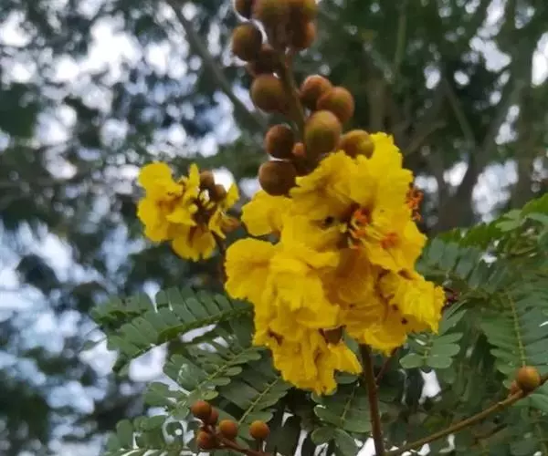 Peltophorum pterocarpum (DC.) Baker ex K. Heyne. Nutt. Pl. Ned. Ind. ed. 2, 2: 755. 1927. ——Inga pterocarpa DC. Prodr. 2: 441. 1825.——Poinciana roxburghii G. Don, Gen. Syst. 2: 433. 1832.——Caesalpinia inermis Roxb. Hort. Beng. 90. 1814, Fl. Ind. ed. 2, 2: 367. 1832. ——Peltophorum inerme (Roxb.) Naves in Blanco, Fl. Filip. ed. 3, pl. 335, ex F. Vill. Nov. App. 69, pro syn. 1884;侯宽昭等, 广州植物志316. 1956.——P. ferrugineum Benth. Fl. Austr. 2: 279. 1864; Gagnep. in Lecomte, Fl. Gen. Indo-Chine 2: 192. 1913.