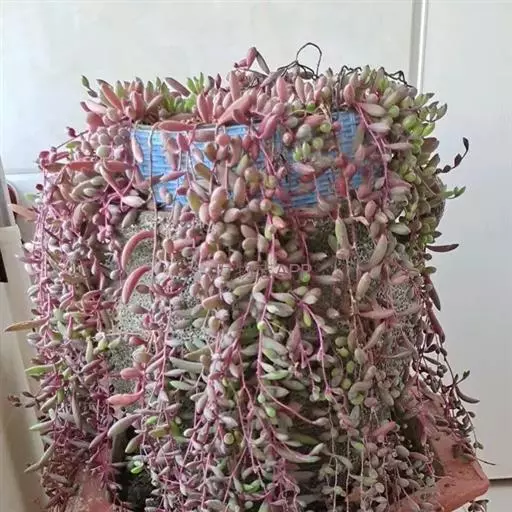 紫玄月几乎没有休眠季节,但夏季高温时应少浇水,叶片起褶皱说明缺水,浇水后第二天叶片就会饱满起来。生根初期需求水分不大,根系生长健壮后会疯了一样呈爆发性生长。在各种垂吊型多肉植物中应该是生长速度最快的了。