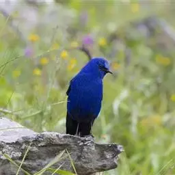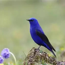 蓝大翅鸲是鹟科、大翅鸲属小型鸟类,体长19-21厘米。两翅尖长。雄鸟通体鲜紫蓝色具金属光泽。…