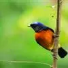 海南蓝仙鹟,Cyornis hainanus (Ogilvie-Grant,1900),鹟科蓝仙鹟属的一种小型鸟类,体长13~15厘米。上体包括两翅和尾表面暗蓝色,前额和眼上眉斑较鲜亮。喉、胸暗蓝色,下胸和两胁蓝灰色,其余下体白色。雌鸟上体橄榄褐色,头和头侧沾灰,眼圈皮黄色,两翅和尾表面栗褐色。喉、胸橙皮黄色,其余下体白色。