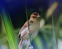 雌鸟上体橄榄褐色,眼先、前额、颏尖白色,眉斑不明显,眼圈皮黄色,眼先淡灰色,头部亦较灰。尾上覆羽和尾羽显露部分锈褐色或栗色,翅暗褐色,羽缘栗棕色或栗色,翅褶合时翅表亦为栗色或栗棕色。喉、胸橙皮黄色或黄栗色,颈侧、胸侧橄榄褐色微缀锈色,腹和尾下覆羽白色。