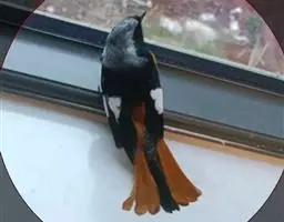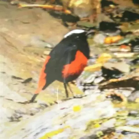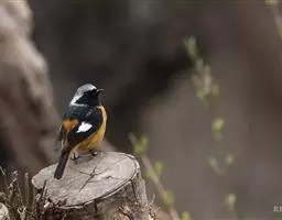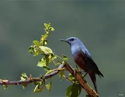 赭红尾鸲:小型鸟类,体长13-16厘米。雄鸟前额、头侧、颈侧、颏至胸概黑色,头顶和背灰色或黑色,…
