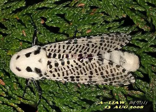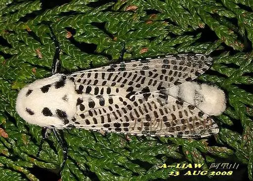 多斑豹蠹蛾,学名是Zeuzera multistrigata,木蠹蛾科豹蠹蛾属的一个物种。多斑豹蠹蛾的成虫灰白色,体长29毫米,翅展55~61毫米。头、胸部都密被灰色短毛。