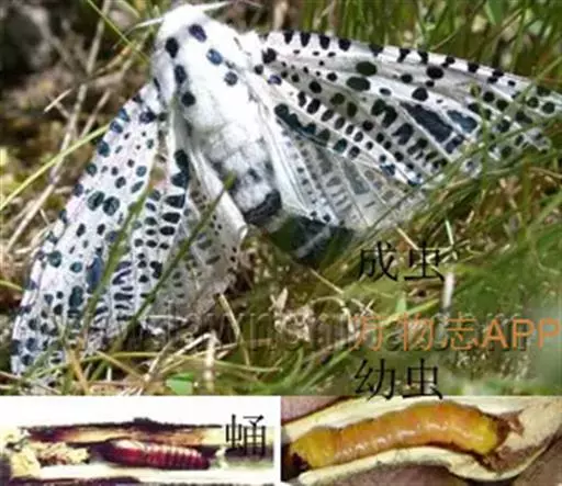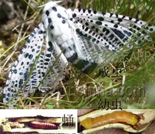 多斑豹蠹蛾在福建省一年发生一代,以中、老龄幼虫在树干基部的坑道内越冬,翌年2月下旬重新蛀食, 5月下旬开始化蛹, 6月上旬为化蛹盛期,蛹期20天, 6月中、下旬为羽化盛期,卵期一般I8天, 孵化盛期在7月上、中旬。幼虫历期313— 321天。
