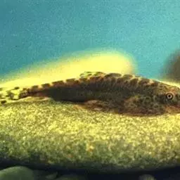 蝌蚪体形中等大小;口部位于吻端腹面;眼位于头的背侧;尾鳍多低平,一般末端钝尖。