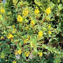 金英常绿灌木,株高约50-160厘米,嫩茎红色。叶片绿色,对生,椭圆形,先端尖,基部楔形,全缘。…