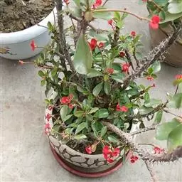 虎刺梅:别称铁海棠,是蔓生灌木植物。茎多分枝,长60-100厘米,直径5-10毫米,具纵棱,密生硬…