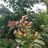 5、疏花疏果。石榴花量大,从5月份开始能长期开花。石榴钟状花不能坐果结实,只有筒状花中的一部分能坐果结实,钟状花占很大比例,因此在开花前除观赏需要保留一部分钟状花外,为了节省养分其余钟状可在蕾期疏去(部分可用作取花药烘花粉用)。石榴的筒状花一般分早、中、晚三个阶段开花。早期花坐果后要保留长成大果,如早期花坐果率低,要保留不疏让其长成果实,晚期花一般果实小,品质差,如果早中期花坐果率低,果实较少,晚期花坐的果实可适当保留部分质量较高的果实,其余全部疏去。