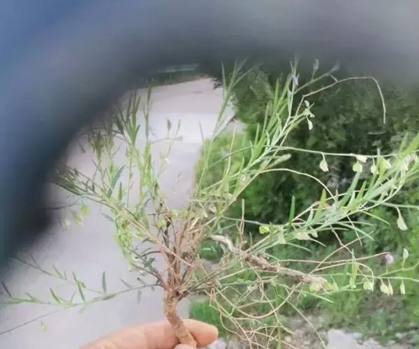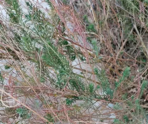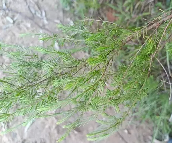 本品为附有少量短嫩枝的叶。嫩枝长5-10mm,具对生叶。叶线形或线状锥形,全体黄绿色,无毛,长5-10mm,宽不及1mm,全缘,先端尖,基部渐狭,叶面有槽,背面凸起,侧脉不明显,具透时的油点,无柄或具短柄。气微香,味苦、涩。以气香、色绿者为佳。
