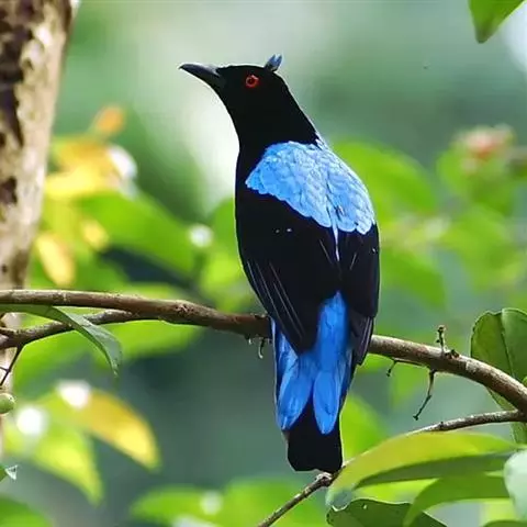 蓝翅叶鹎:小型鸟类,体长15-18厘米。雄鸟通体草绿色,尾蓝绿色,肩和翅亮蓝 色,胸缀有黄色,…