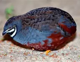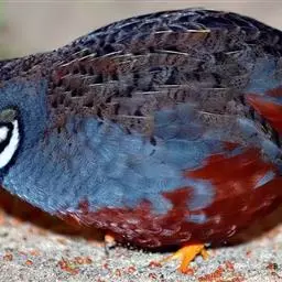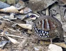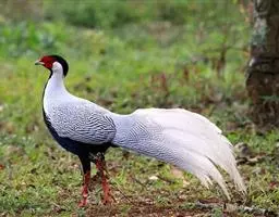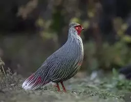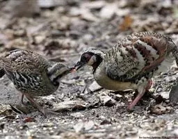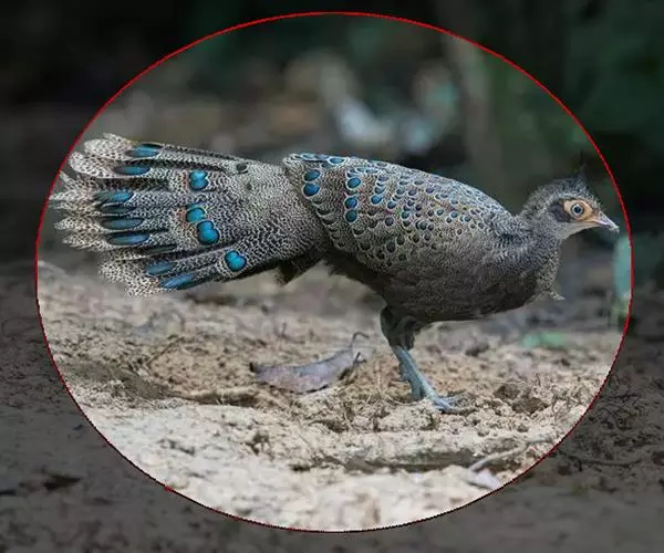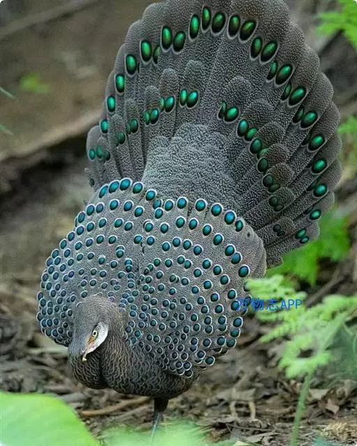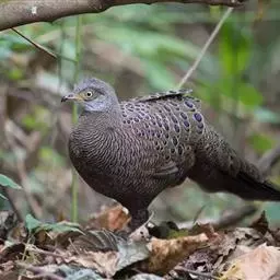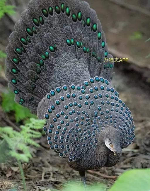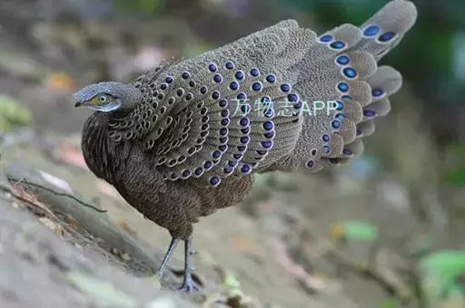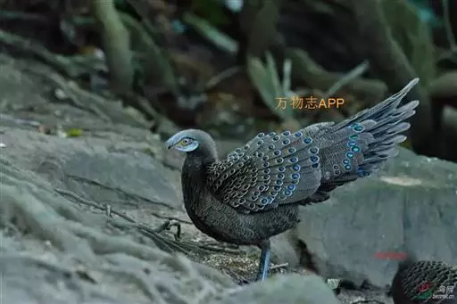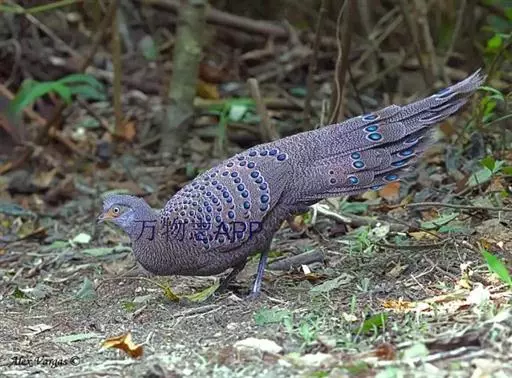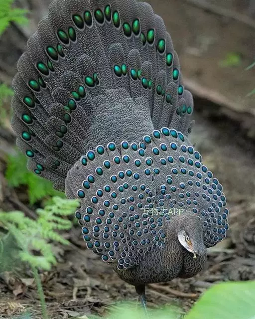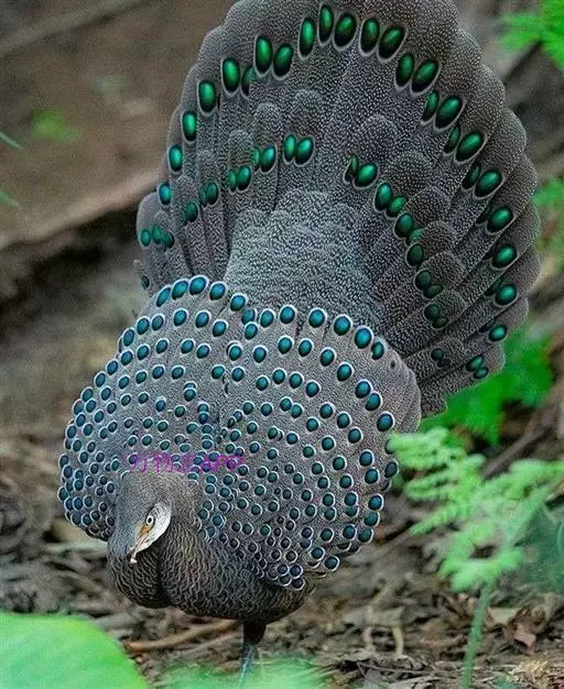 灰孔雀雉(学名:Polyplectron bicalcaratum):雄鸟体长50-67厘米,体重456-710克;雌鸟体长33-52厘米,体重460-500克。雄鸟全身羽毛黑褐色,密布几乎纯白色的细点和横斑;上背、翅膀和尾羽端部具紫色或翠绿色金属光泽的绚丽的眼状斑,象孔雀羽毛上的孔雀斑一样,故名之。雌鸟体型较小,尾羽稍短,体色与雄鸟相似而较暗,眼状斑不明显。